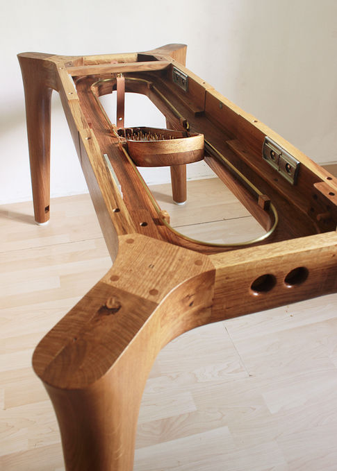 #diningtable #pinball #solidwood #oak #brass #steelplate #woodfurniture #handmade #furnituredesign